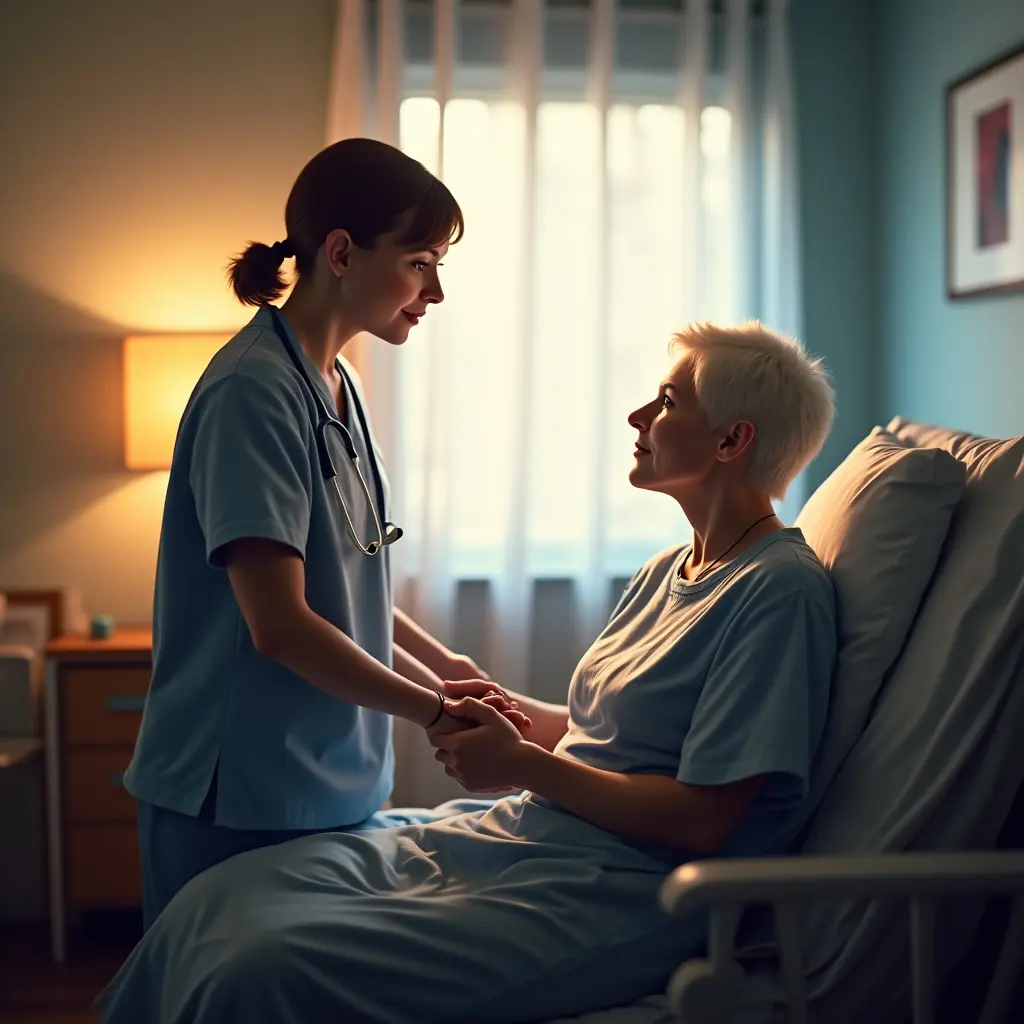 환자와 보호자가 함께 손을 잡고 서로를 격려하는 모습은 병실의 따뜻한 풍경을 자아냈습니다.